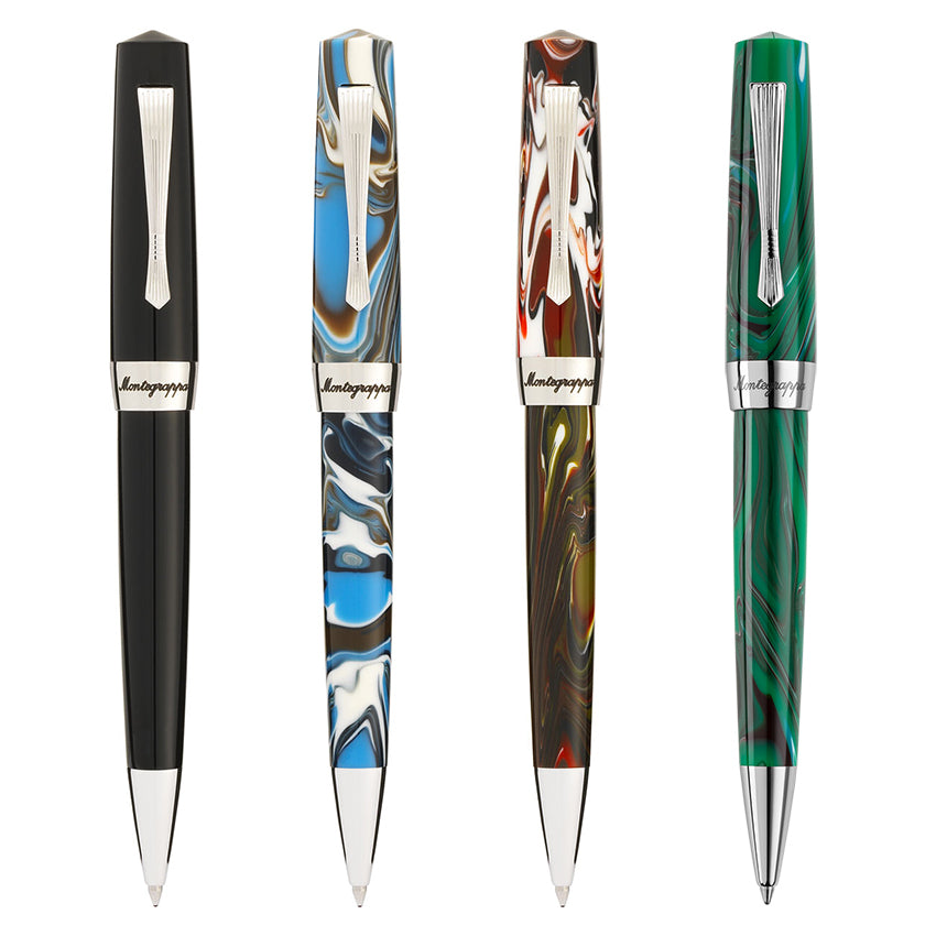 1920年代の草創期から、シンプルで美しい筆記具を作り続けてきたモンテグラッパ。共同創業者の一人ハインリッヒ・ヘルム(通称エルモ)の名を冠したこのペンは、金属パーツの使用を最小限に抑えながらも華やかさを失っていません。円錐形のトップと縦溝装飾を施したクリップが特徴です。