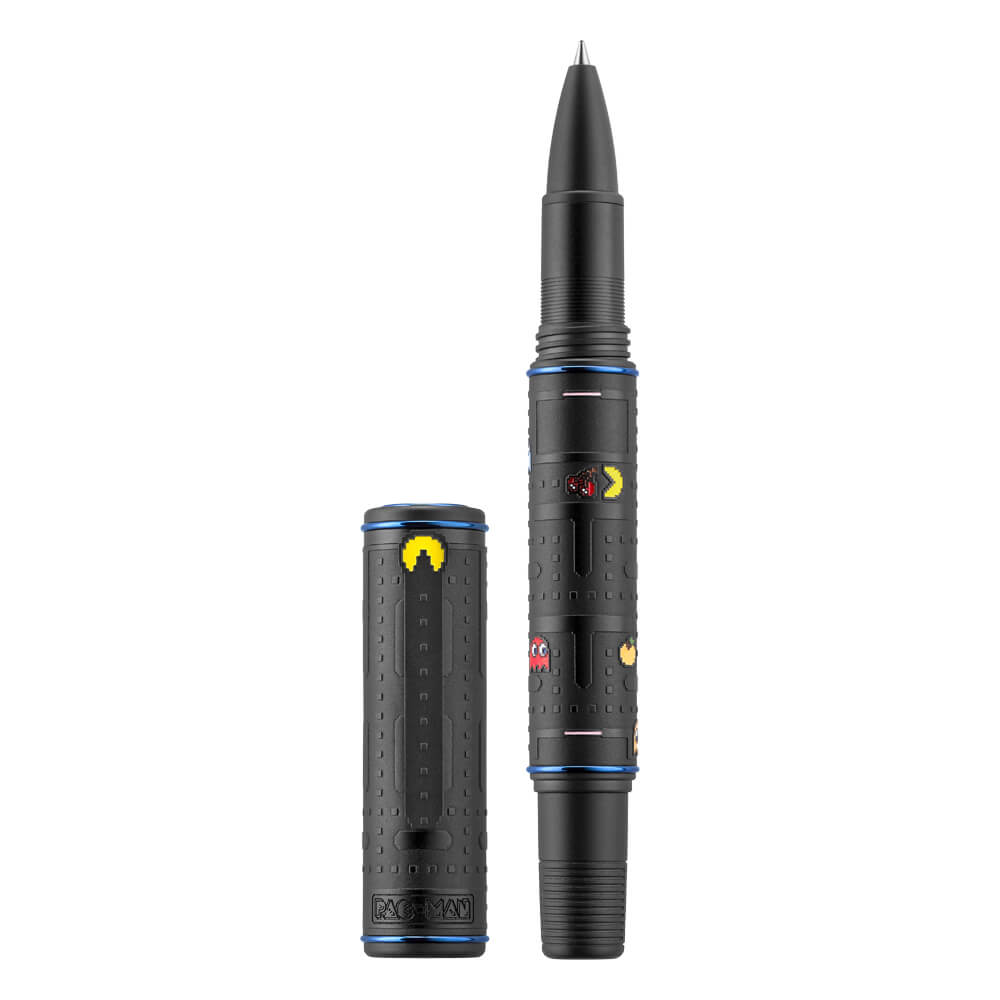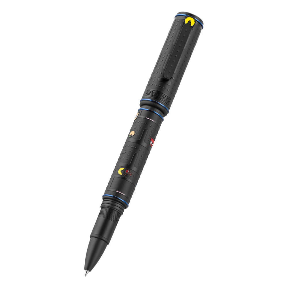 筆記スタイルは14kペン先の万年筆とローラーボールより選択可能、パックマンロゴの入ったカスタムボックスと共にお届けします。大人の遊び心と郷愁感を満たす、ユニークなアイテムです。