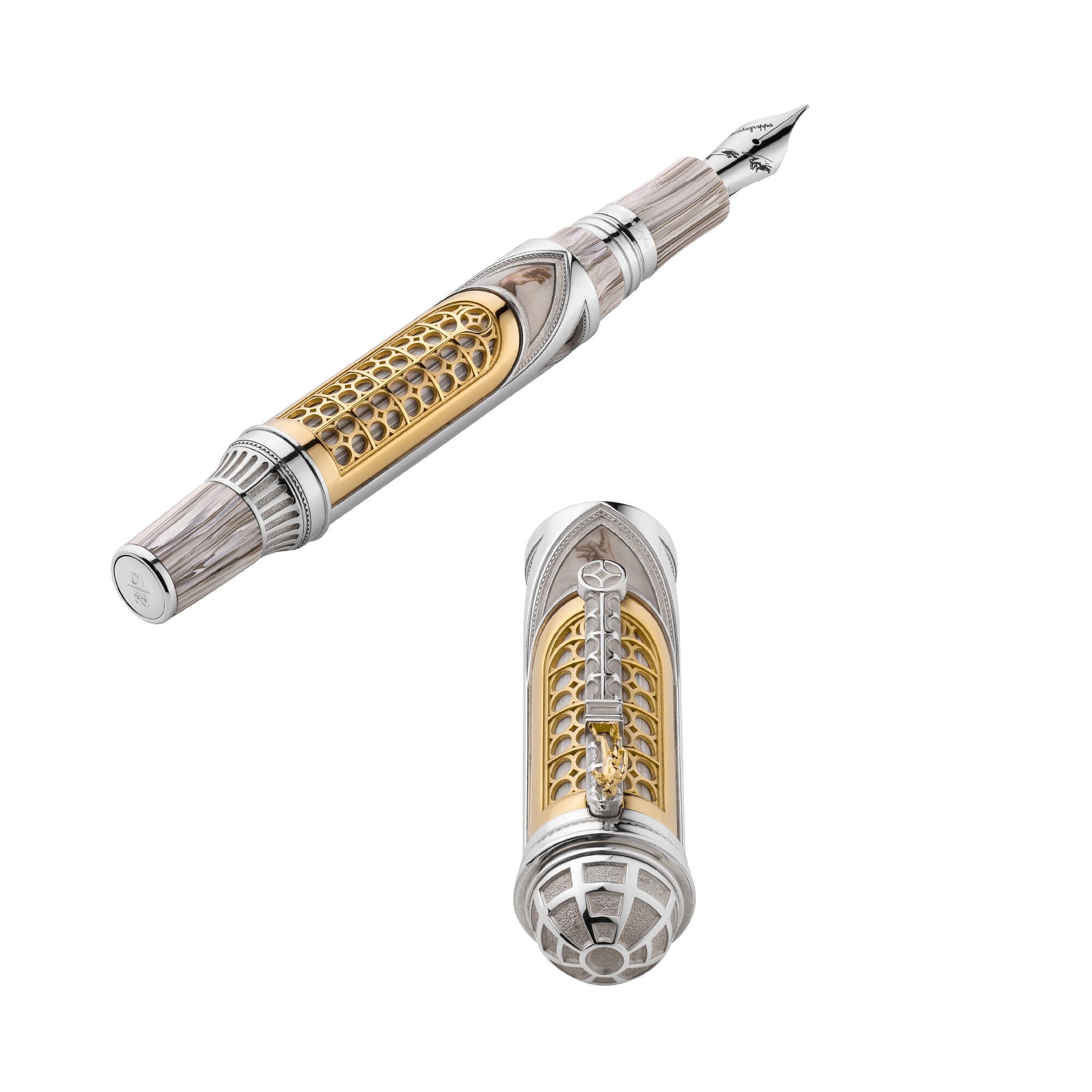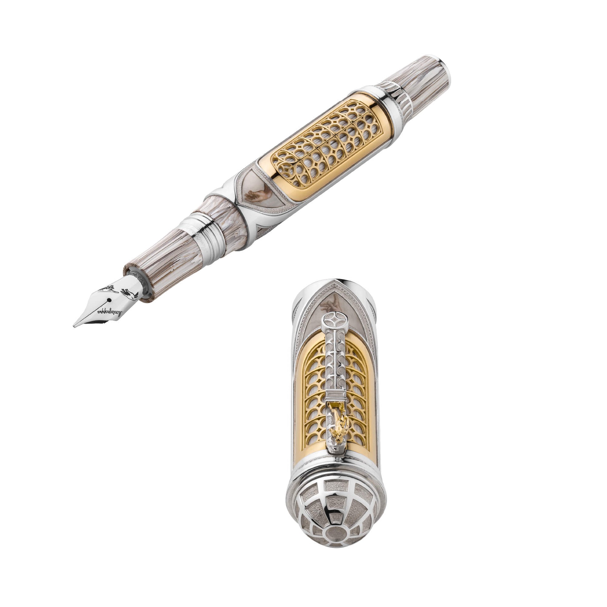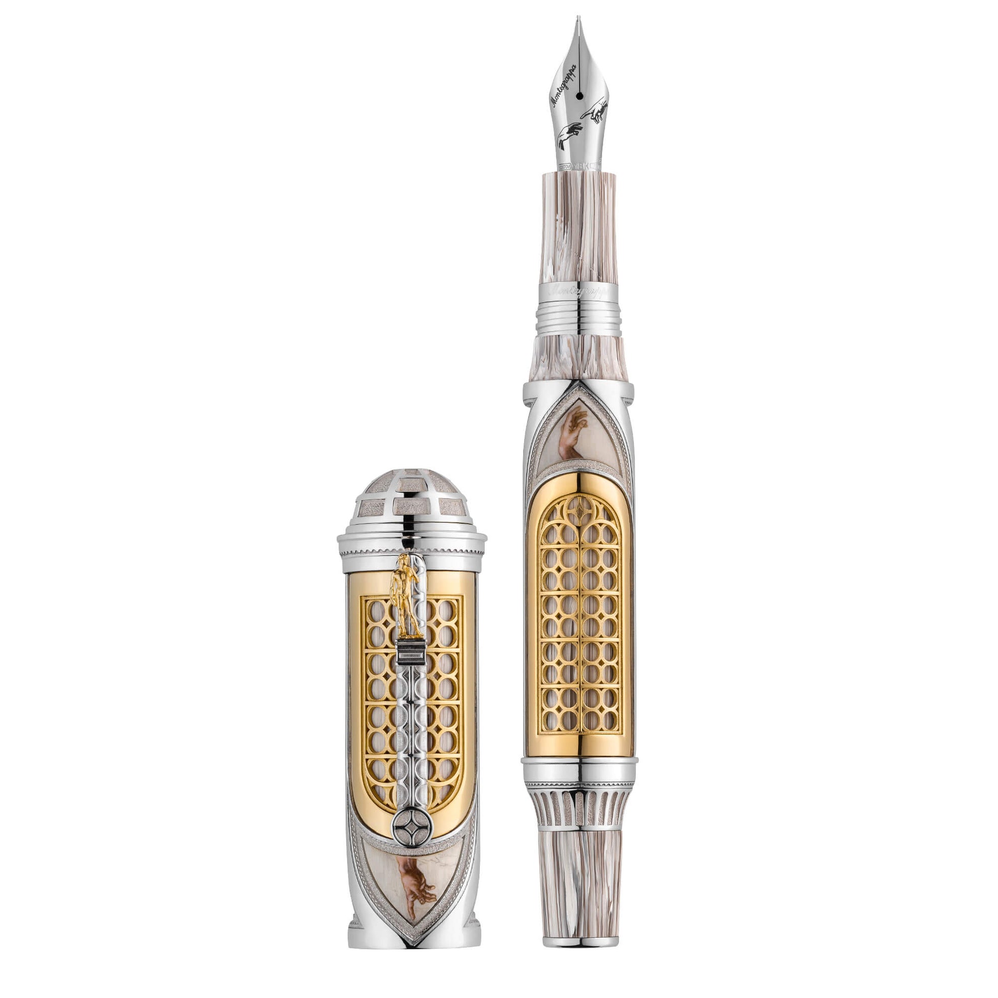 ボディにはカッラーラの白大理石の様な独自ブレンドのモンテグラッパイトを採用。ロストワックス鋳造の調和のとれたシンメトリーのシルバー装飾は、システィーナ礼拝堂の象徴的なデザインを想起させます。明り取りのドームをイメージしたキャップトップも印象的です。